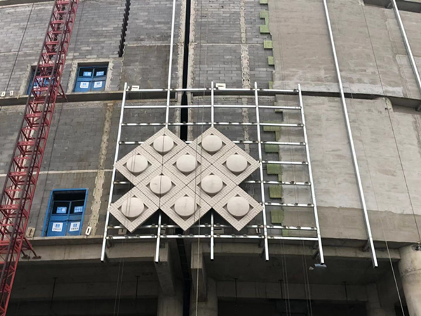除上述外的其他板型还有:菱形加圆形单曲造型灰色荔枝面GRC组合板、碗状双曲造型灰色荔枝面GRC组合板、灰色荔枝面平板,均各有特色,从不同的角度展现中原文化的根源性、原创性、包容性、开放性。中原文化博大精深,源远流长,她不是普通的地域文化,而是中华民族传统文化的根源和主干。中原文化璀璨瑰丽,而郑州美术馆及档案史志馆、郑州博物馆新馆犹如深闺待嫁的新娘,2019年让我们共同见证她的华丽呈现。